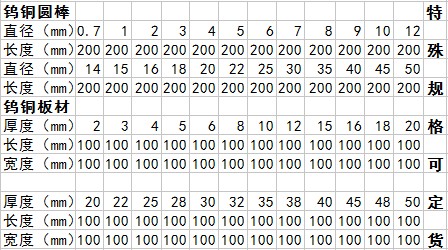 广毅荣钨铜合金现货规格: